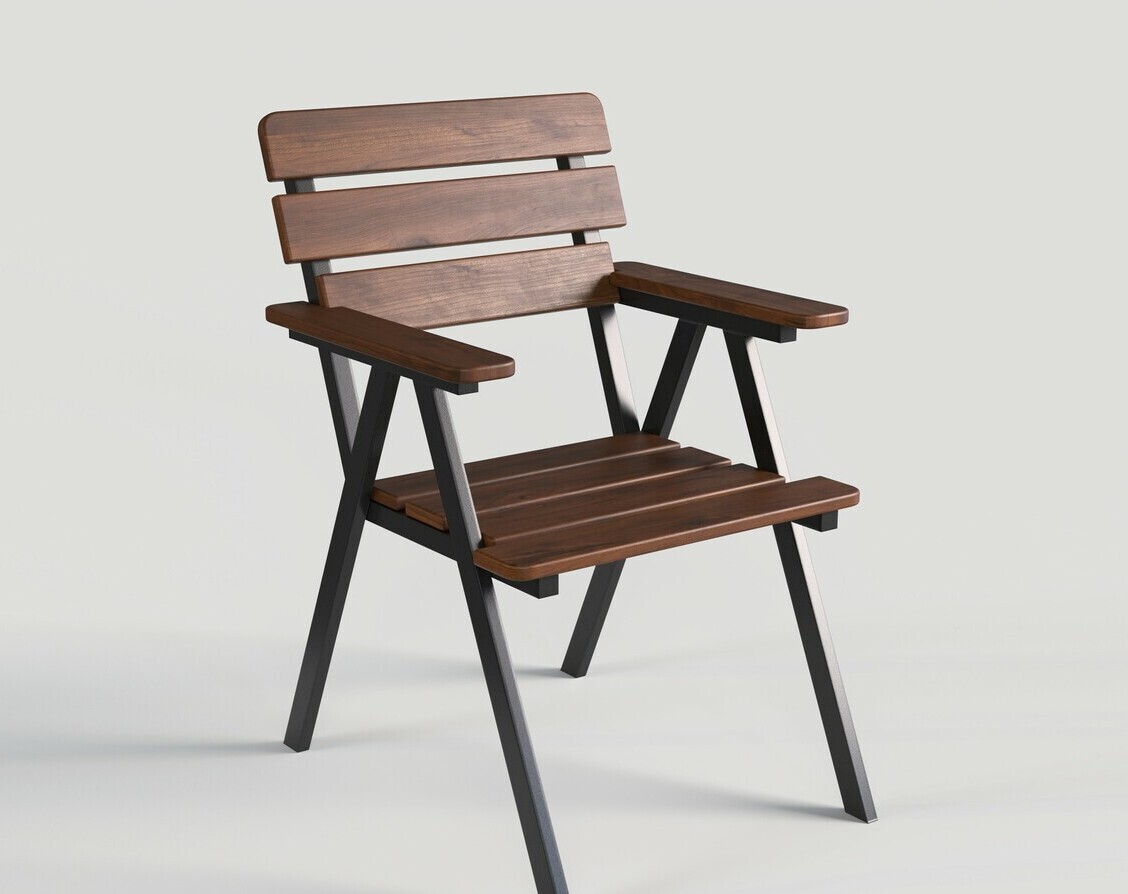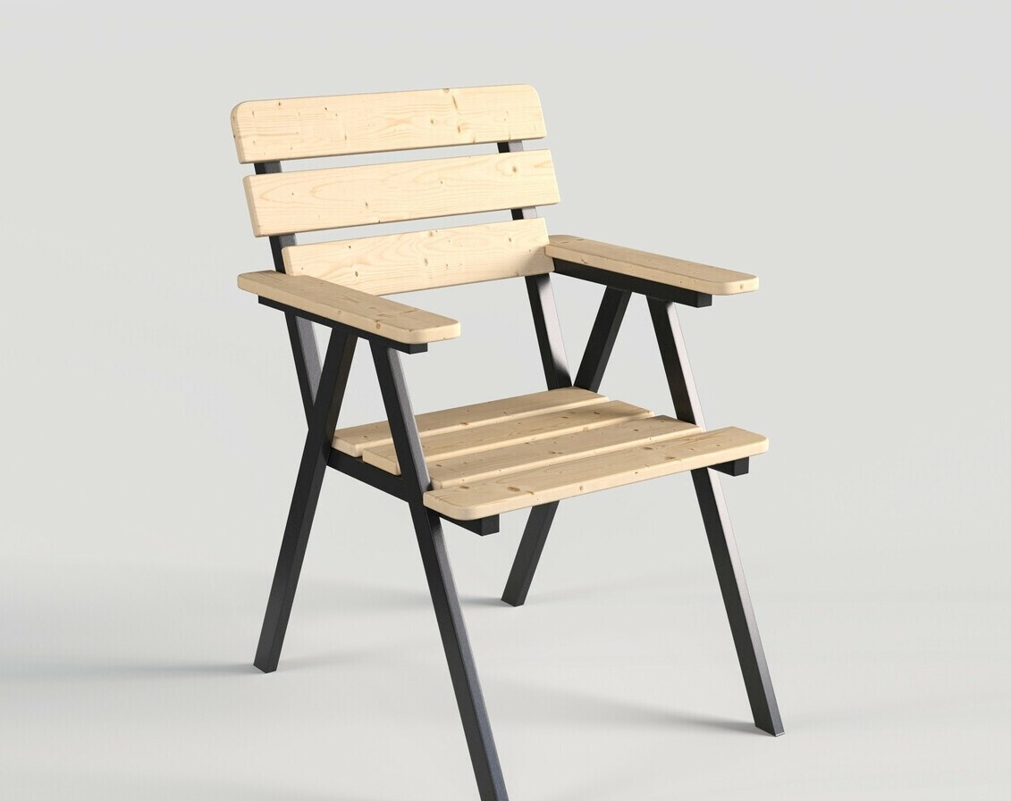 Кресло садовое с деревянным реечным сидением на металлическом каркасе