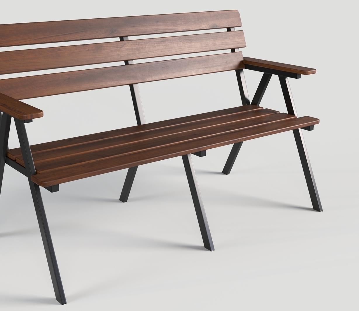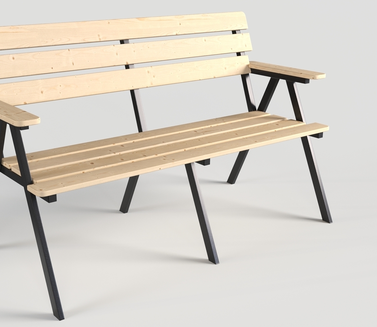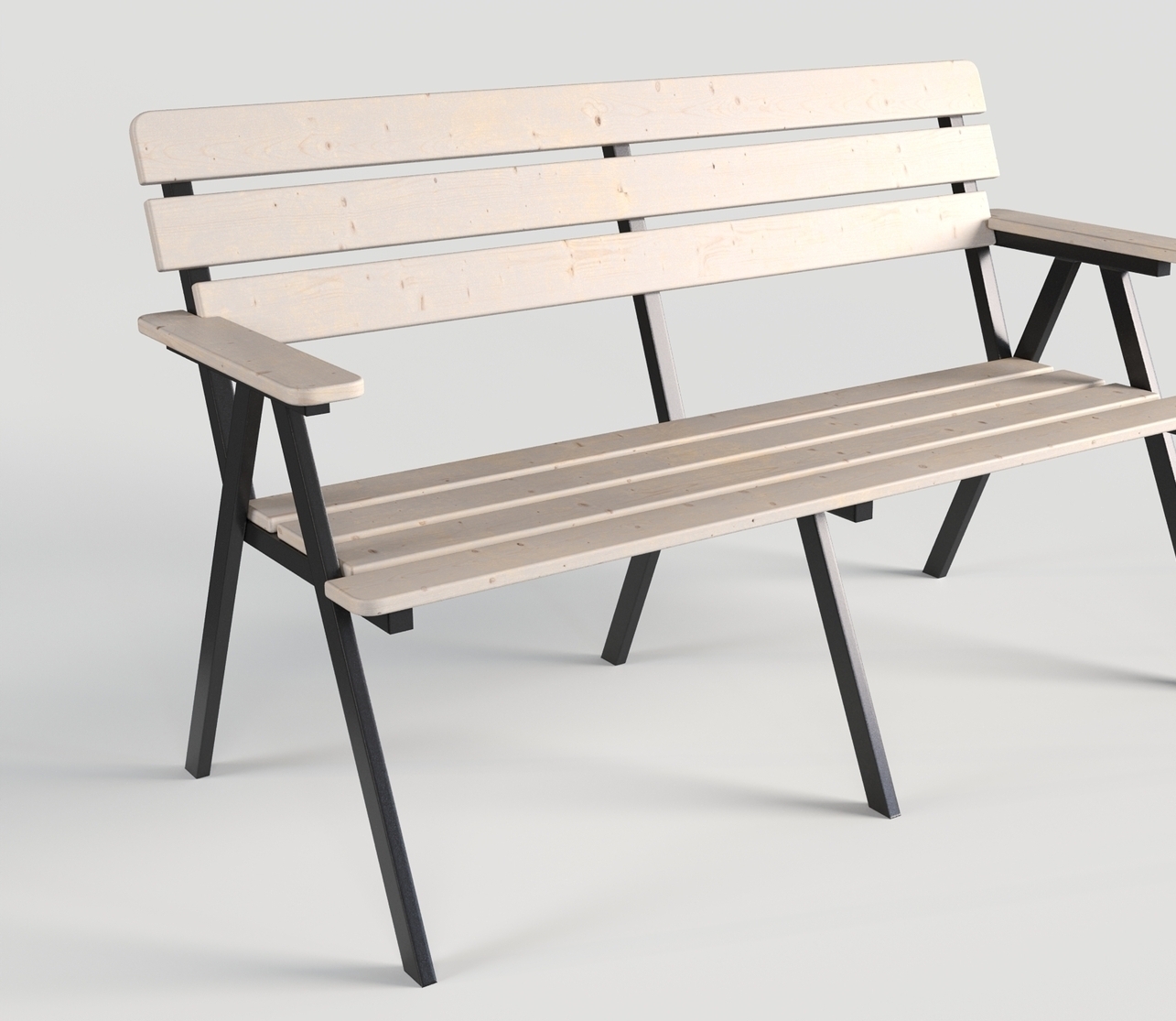 Скамья садовая с деревянным реечным сидением на металлическом каркасе
