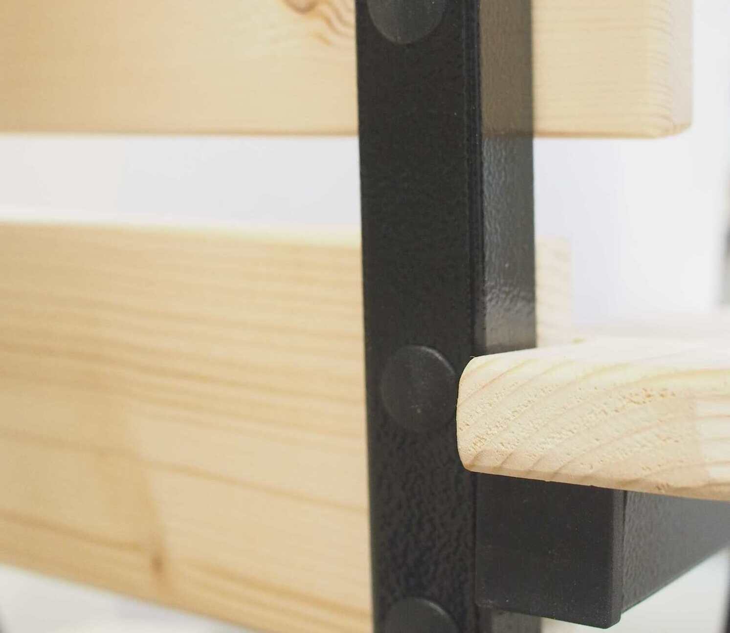 Спинка и сидение стула выполнены из цельных натуральных сосновых реек. Рейки профилированные (с закруглёнными краями) и шлифованные, толщиной 20мм, не требуют дополнительной обработки .