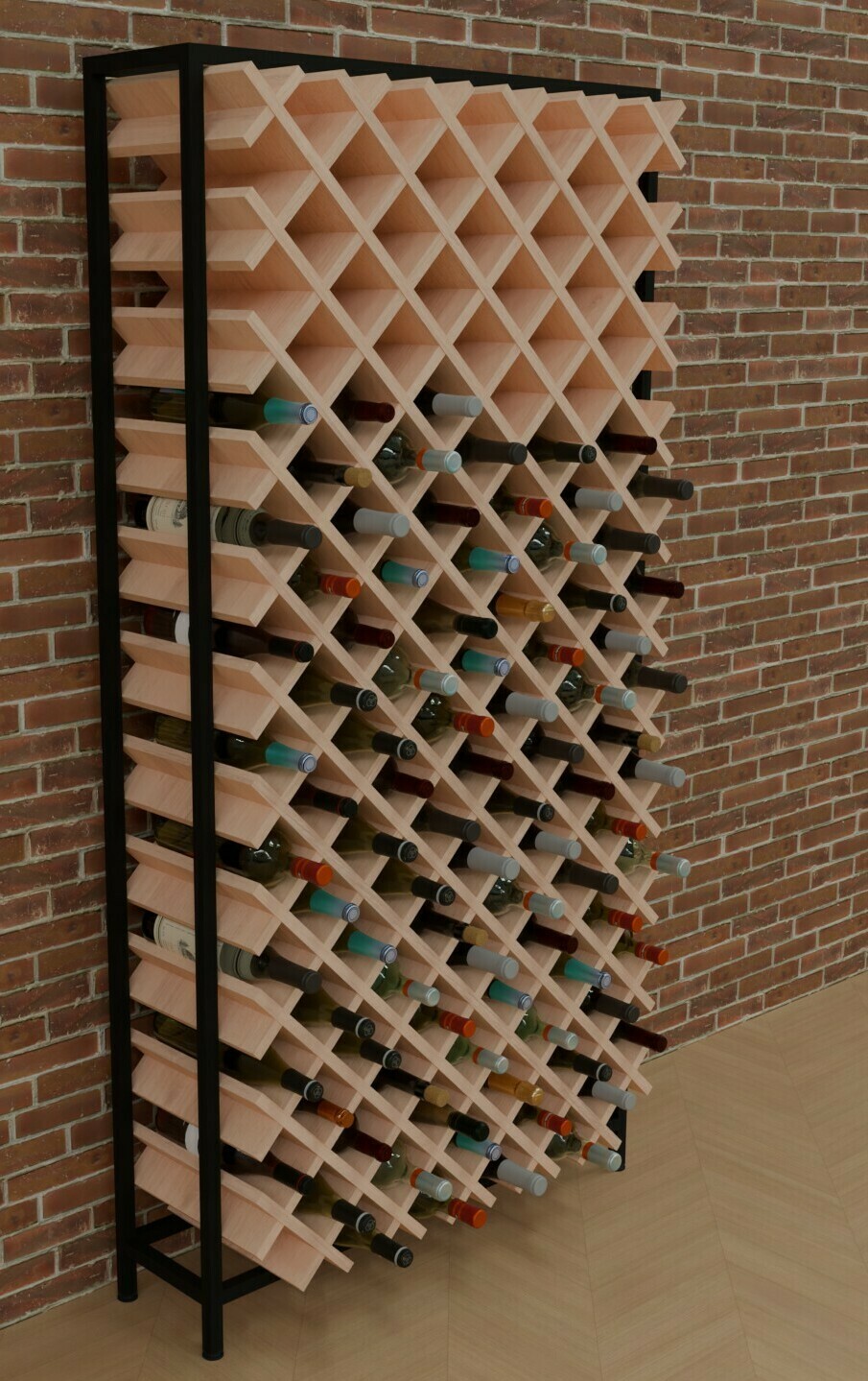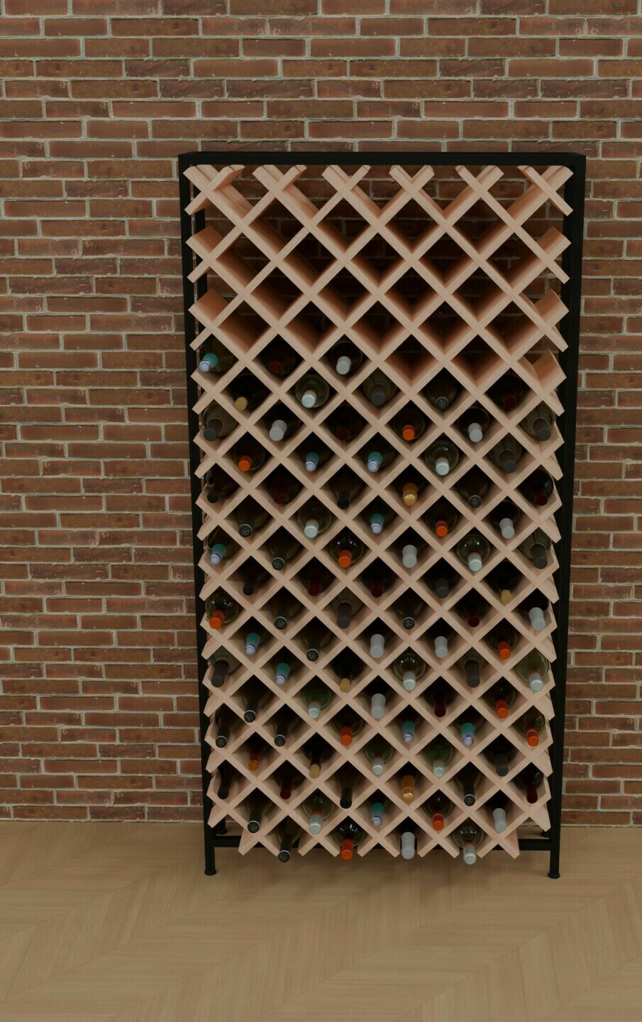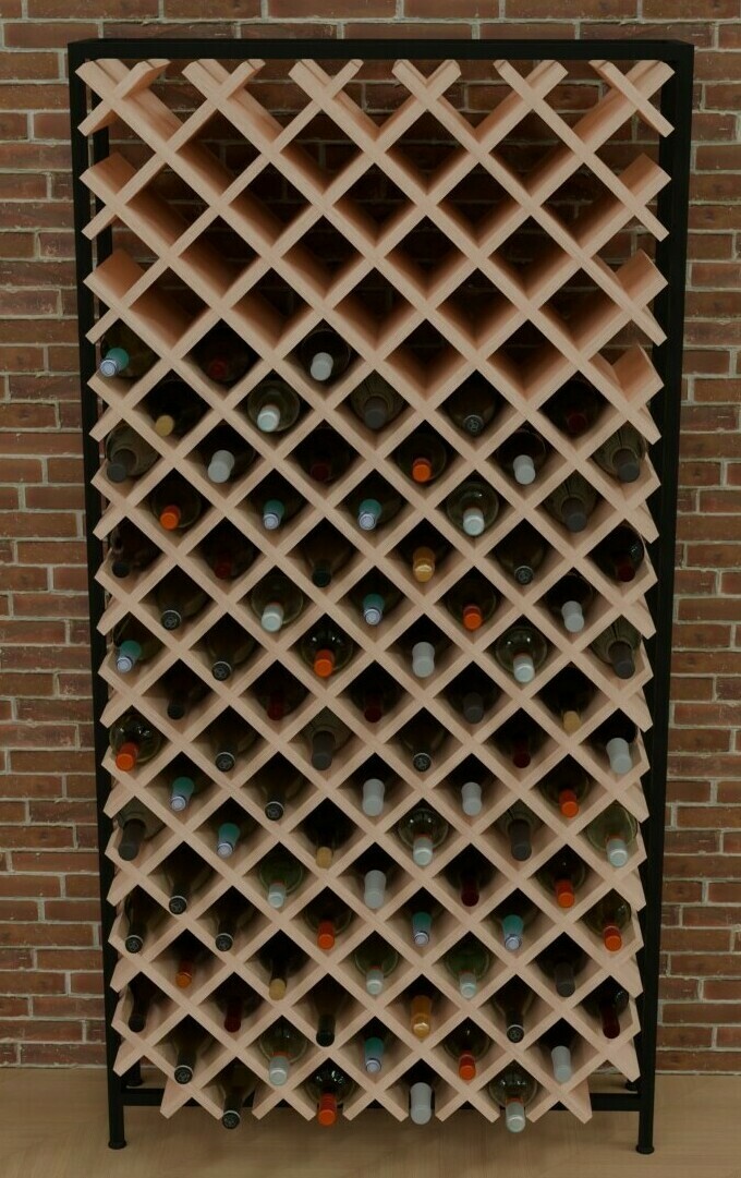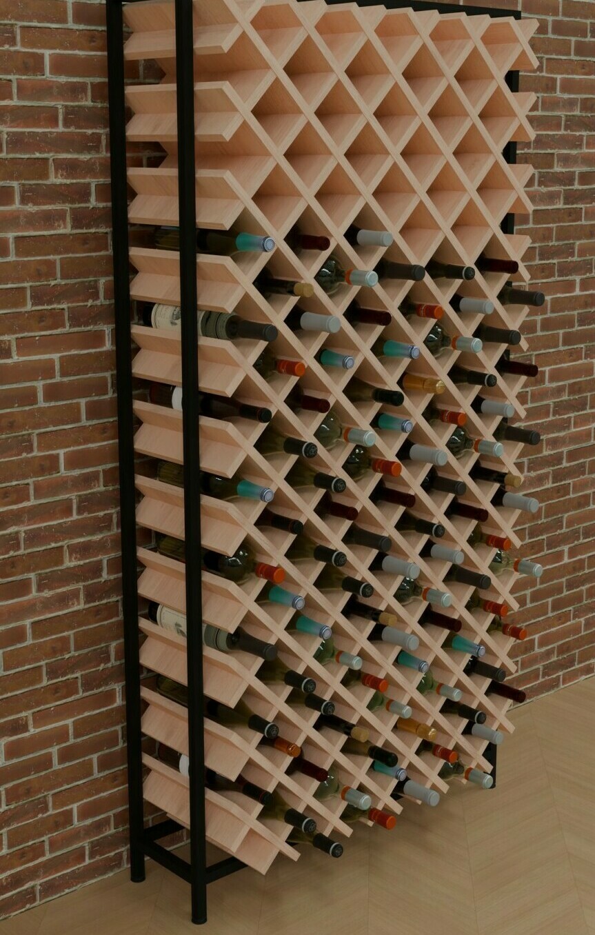 Стеллаж для винных бутылок с полками из фанеры на металлическом каркасе