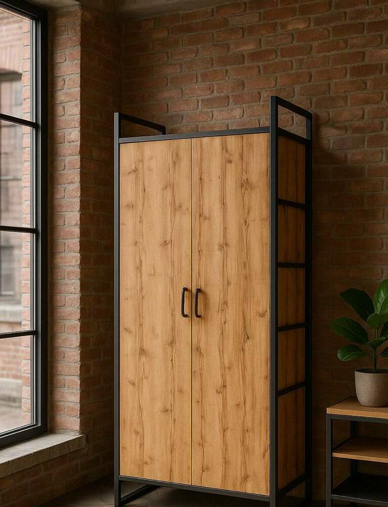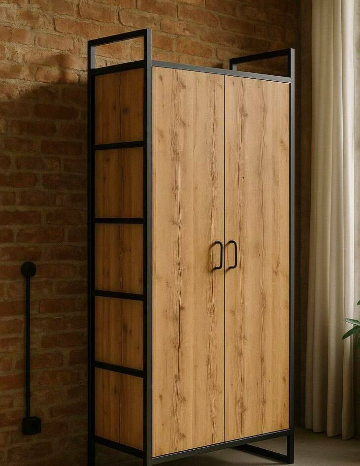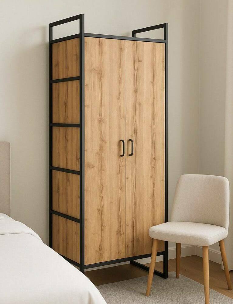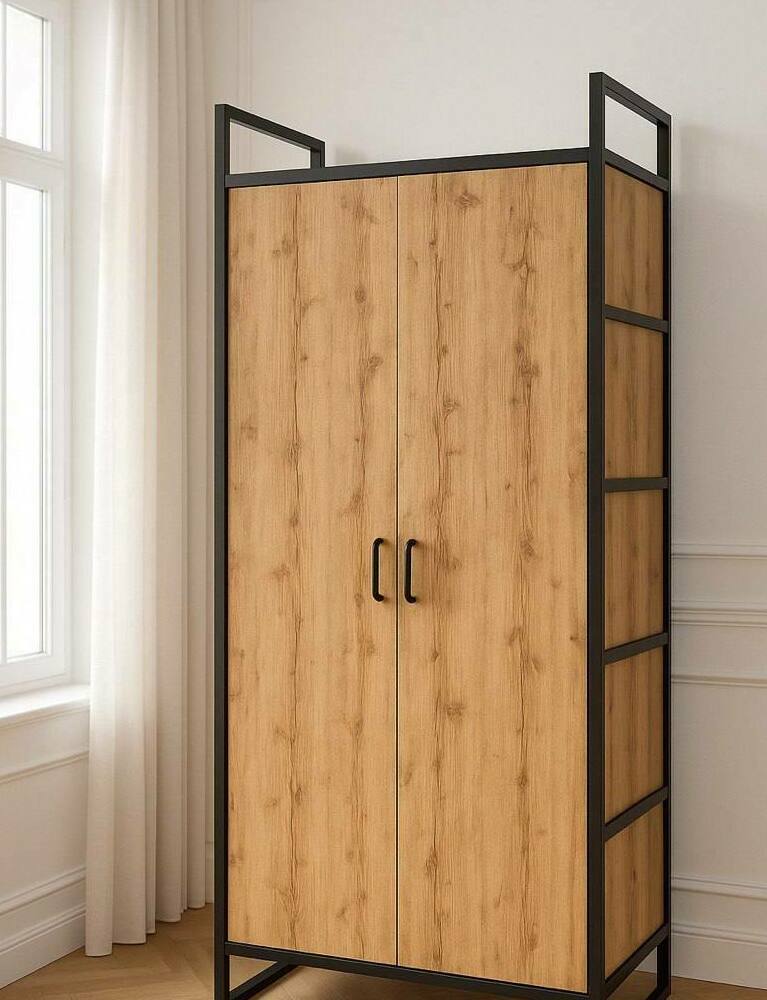 Платяной шкаф с корпусом из сосны на металлическом каркасе