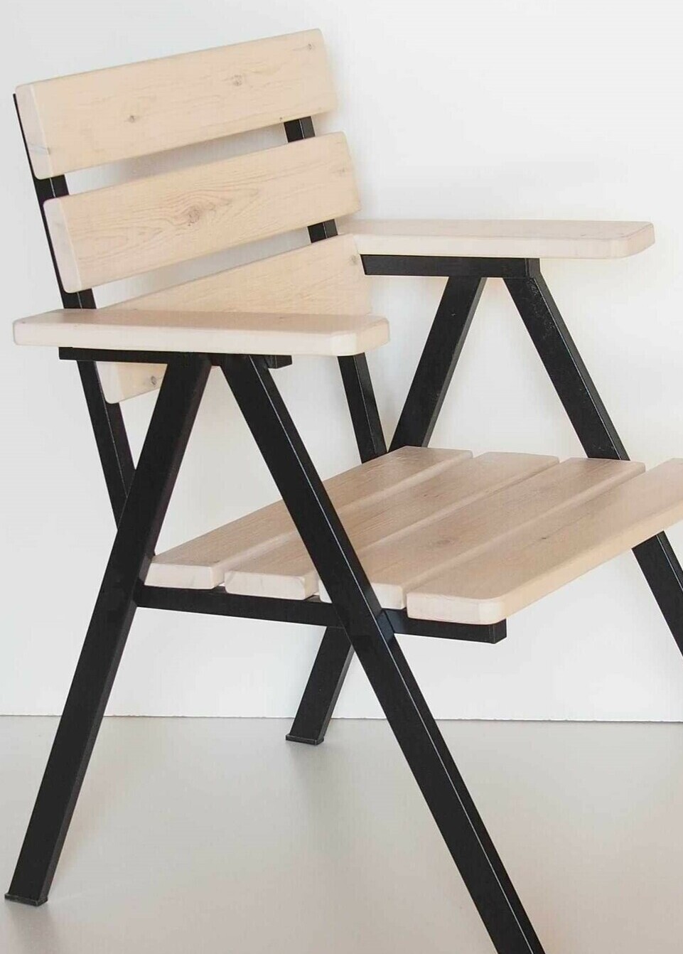 Стул в стиле LOFT в простом и строгом исполнении. Сделан из натуральных и долговечных материалов, покрытых защитным лаком. Подойдет для дома, бани или террасы. Имеет легкую в сборке конструкцию.