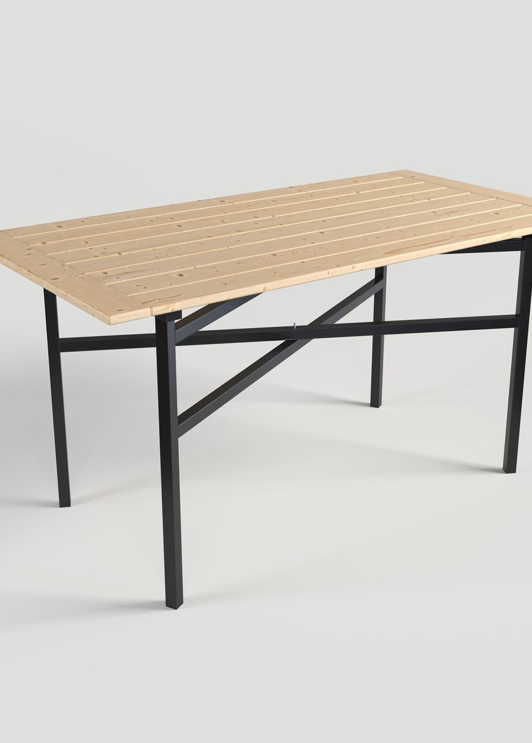 Обеденный стол на 6 персон в лаконичном LOFT-исполнении. Изготовлен из массива сосны и стального каркаса. Хорошо впишется в сад, на террасу или в зону кухни. Простая сборка.